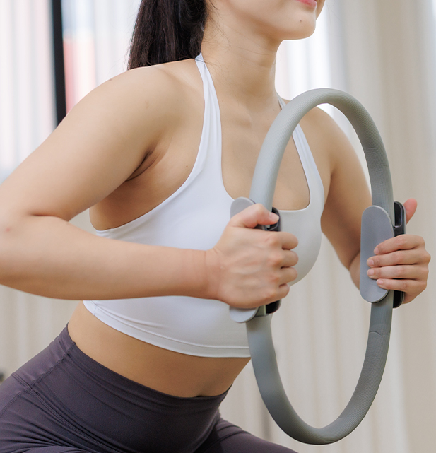ピラティスリングはピラティスシステムにおける代表的なコアレジスタンス器具です。高弾性の内部構造と耐久性に優れた外層を組み合わせ、安定した抵抗と快適な触感を提供します。押す・引く・挟むといった動作を通じて、腕、胸、太もも、体幹の筋肉を的確に刺激。筋持久力の向上や姿勢改善(猫背・骨盤前傾の補正)にも効果的です。軽量で持ち運びやすく、スタジオから自宅まで幅広い環境で活用できる、ボディメイクと機能改善を両立するプロフェッショナルツールです。